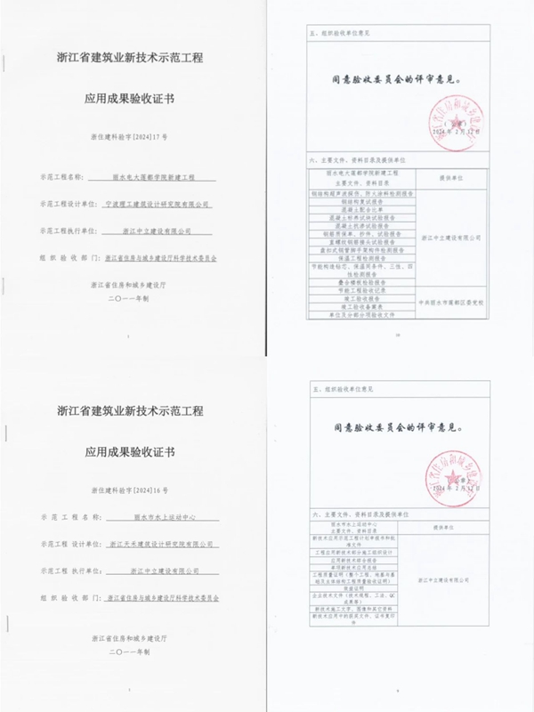 近日,中立建設(shè)承建的“麗水電大蓮都學(xué)院新建工程”和“麗水市水上運(yùn)動(dòng)中心”,通過浙江省住房和城鄉(xiāng)建設(shè)廳科學(xué)技術(shù)委員會(huì)組織的驗(yàn)收組驗(yàn)收,兩個(gè)項(xiàng)目獲“浙江省建筑業(yè)新技術(shù)應(yīng)用示范工程”。