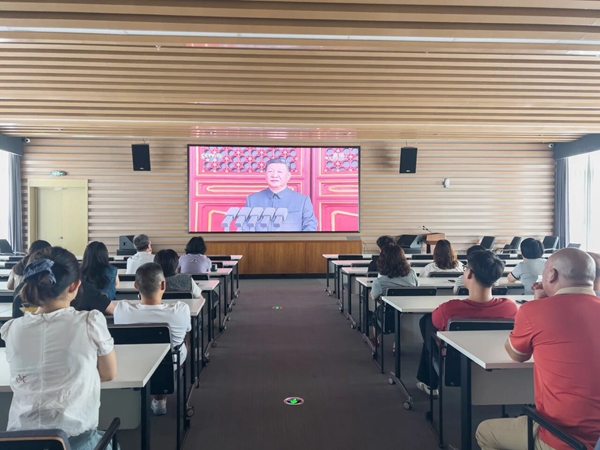 上午9時(shí),全體員工聚精會(huì)神地觀看直播畫(huà)面,不時(shí)發(fā)出陣陣贊嘆。當(dāng)國(guó)旗護(hù)衛(wèi)隊(duì)邁著鏗鏘有力的步伐走向升旗區(qū),當(dāng)雄壯的《義勇軍進(jìn)行曲》響徹天安門(mén)廣場(chǎng),觀看現(xiàn)場(chǎng)的員工們自發(fā)起身,與現(xiàn)場(chǎng)同步高唱國(guó)歌,表達(dá)對(duì)祖國(guó)的深切熱愛(ài)和崇高敬意。
