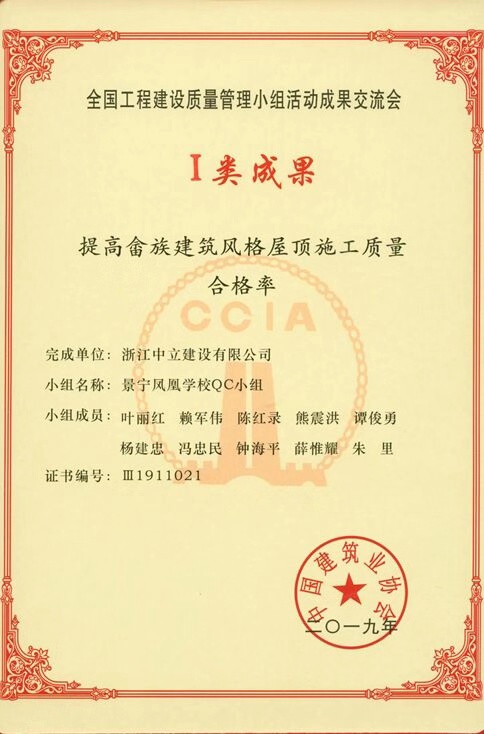 該成果在2019年全國工程建設質(zhì)量管理小組活動成果交流會發(fā)布,并獲得全國工程建設質(zhì)量管理小組活動成果Ⅰ類成果獎,是該批(第三批,共四批)發(fā)布的浙江省唯一的一個Ⅰ類成果,這也是麗水地區(qū)首個全國工程建設質(zhì)量管理小組活動成果Ⅰ類成果。