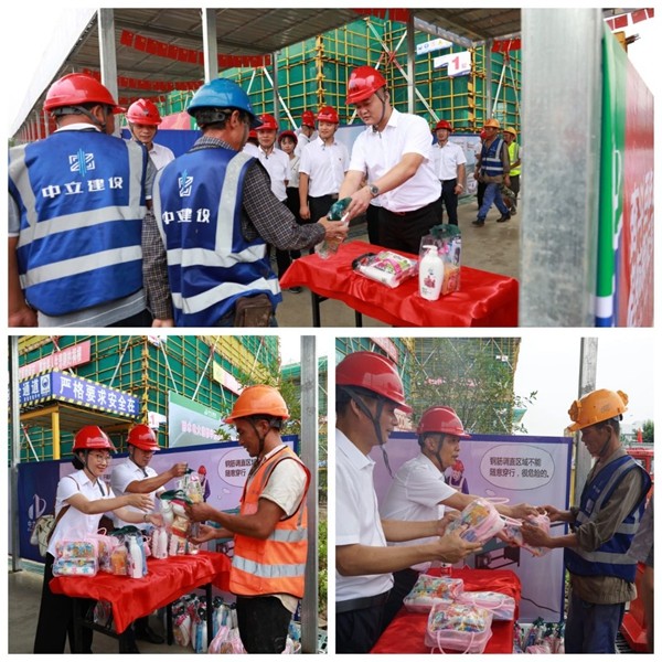公司為高溫作業(yè)的一線工人送去慰問(wèn)品,感謝大家在高溫下依舊奮斗在各自的工作崗位上,并叮囑施工人員要持續(xù)做好自身的防疫防護(hù)措施和夏季個(gè)人防暑防護(hù)工作,保持健康的身體和良好的精神狀態(tài),保障項(xiàng)目安全生產(chǎn)。