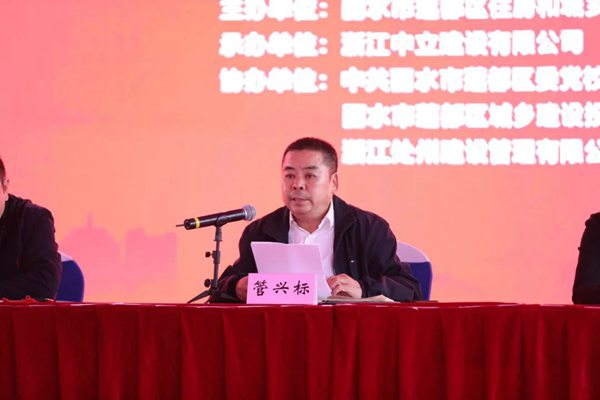 蓮都區(qū)副區(qū)長管興標、蓮都區(qū)建設局副局長吳大勇、蓮都區(qū)委黨校常務副校長陸朝霞、區(qū)建投公司副經理劉良、浙江中立建設有限公司董事長周健、浙江處州監(jiān)理總經理王建武主席臺就座,蓮都區(qū)建筑施工、監(jiān)理企業(yè)代表及相關主管部門代表參加觀摩會。